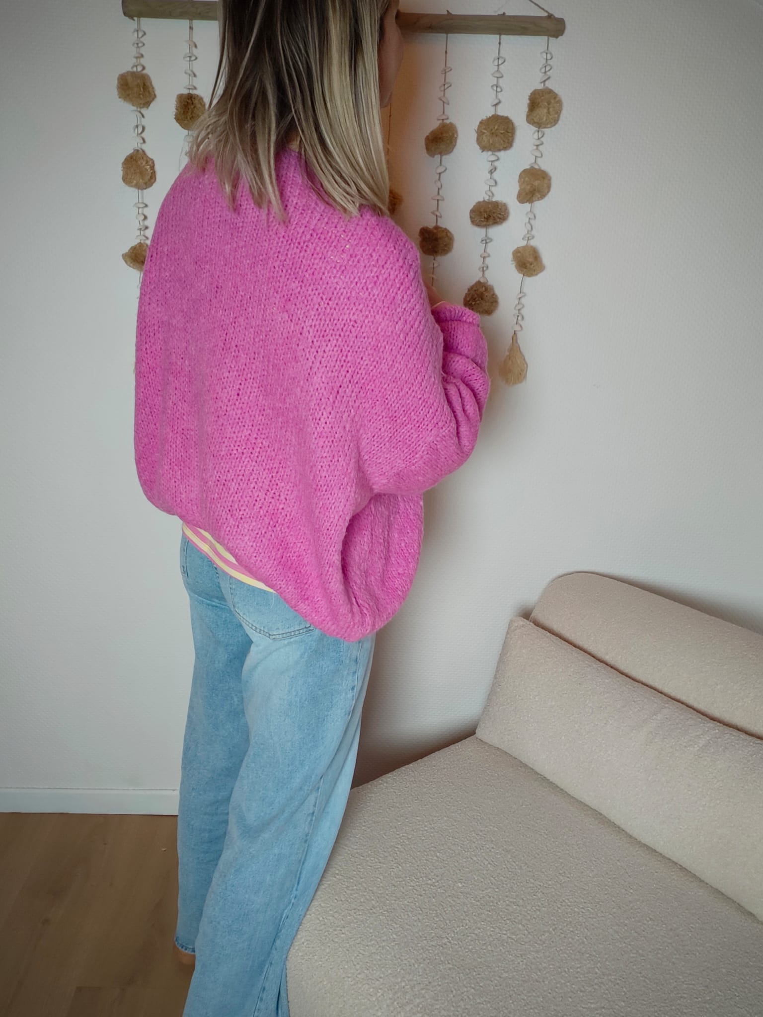 Le cardigan Lola est la pièce coup de cœur qui réveille instantanément une tenue. Son rose vibrant et sa maille moelleuse apportent chaleur, douceur et une touche de bonne humeur à ton look. Sa coupe ample et ses manches volumineuses créent un style moderne, confortable et ultra cocooning.