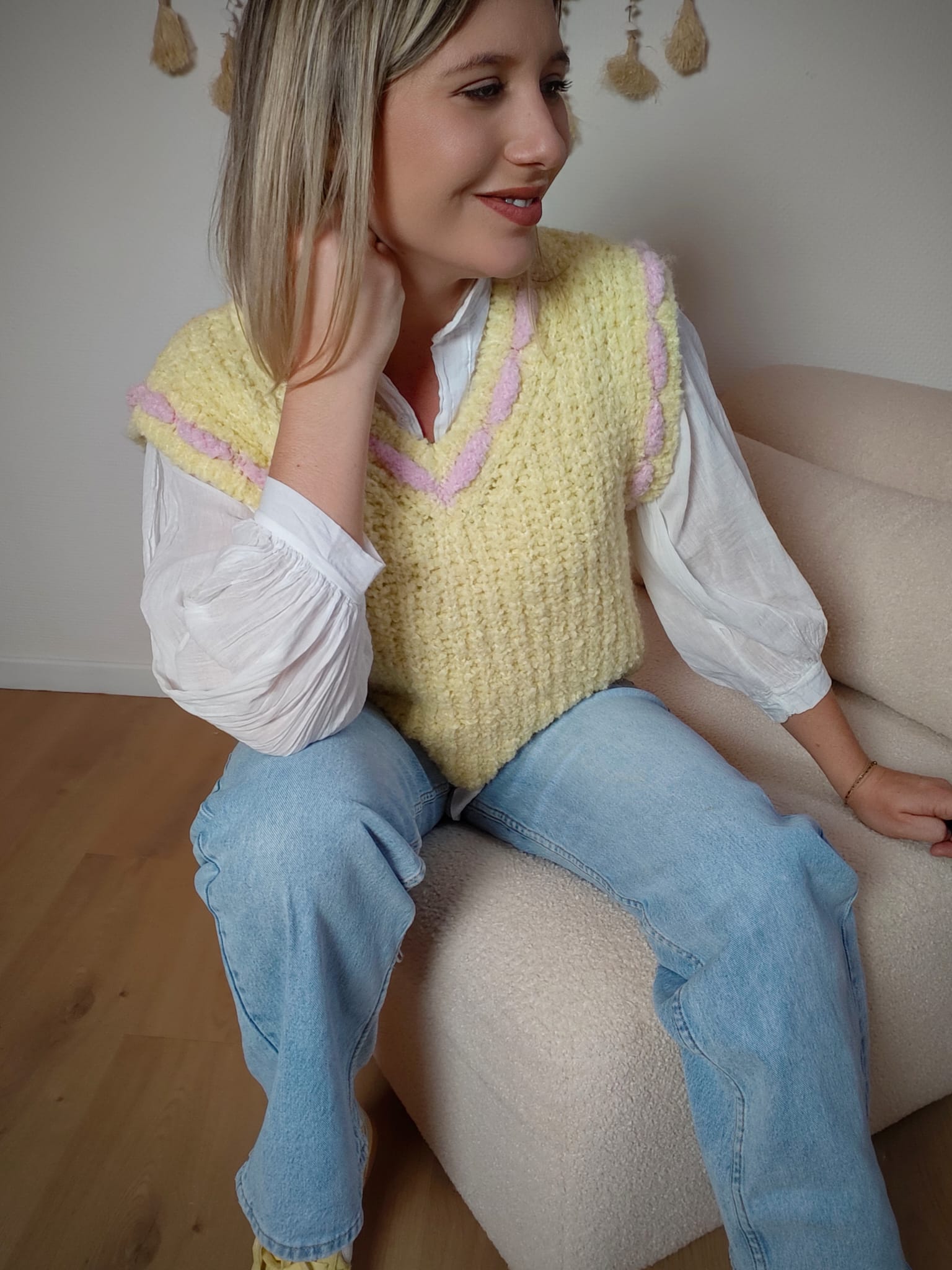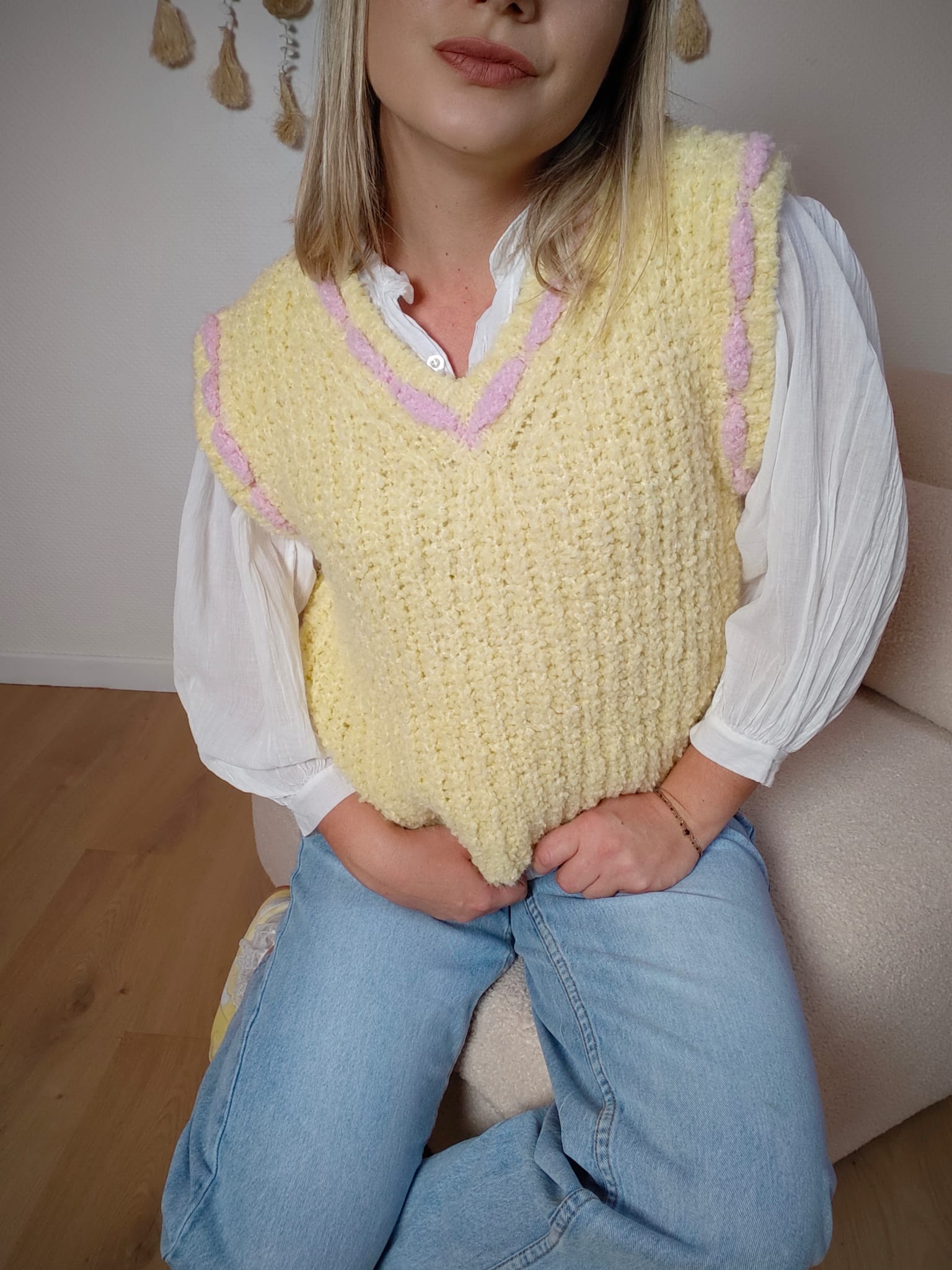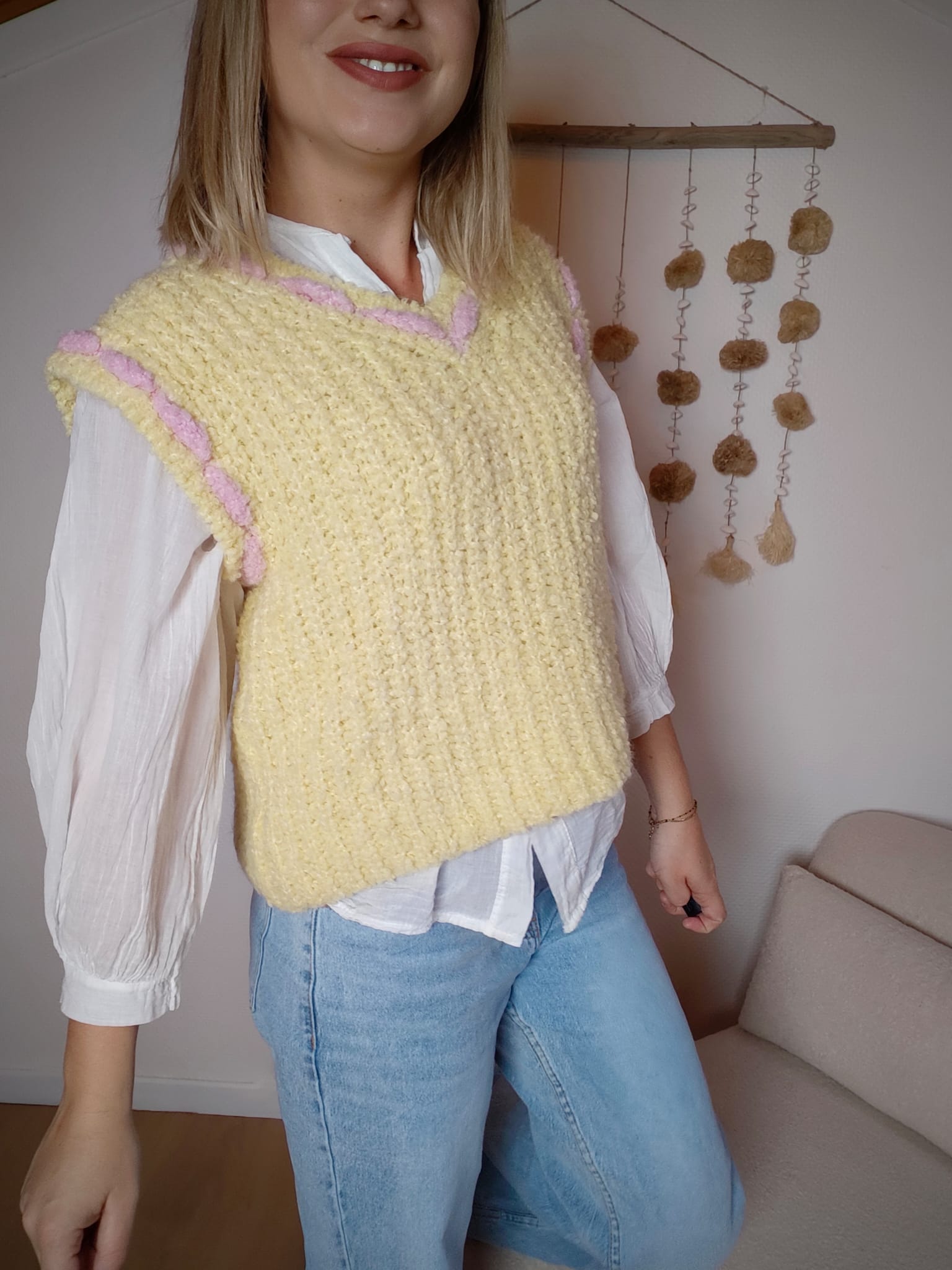 Apporte une touche douce et lumineuse à tes looks avec le pull sans manche Limonade Rosée. Sa maille texturée ultra moelleuse et ses finitions roses délicates en font une pièce à la fois cosy et tendance. Parfait superposé sur une chemise ou un t-shirt, il illumine instantanément une tenue simple.