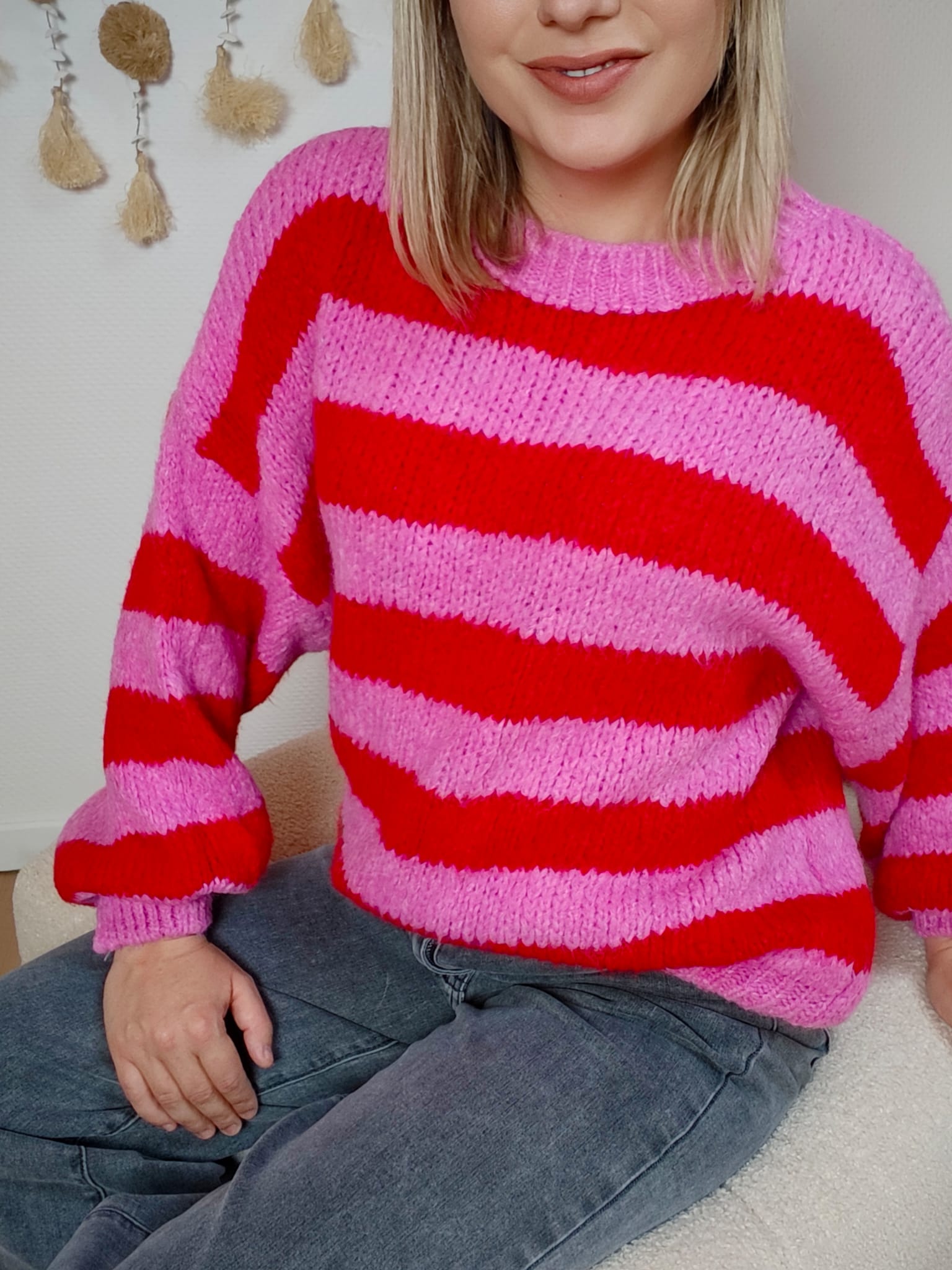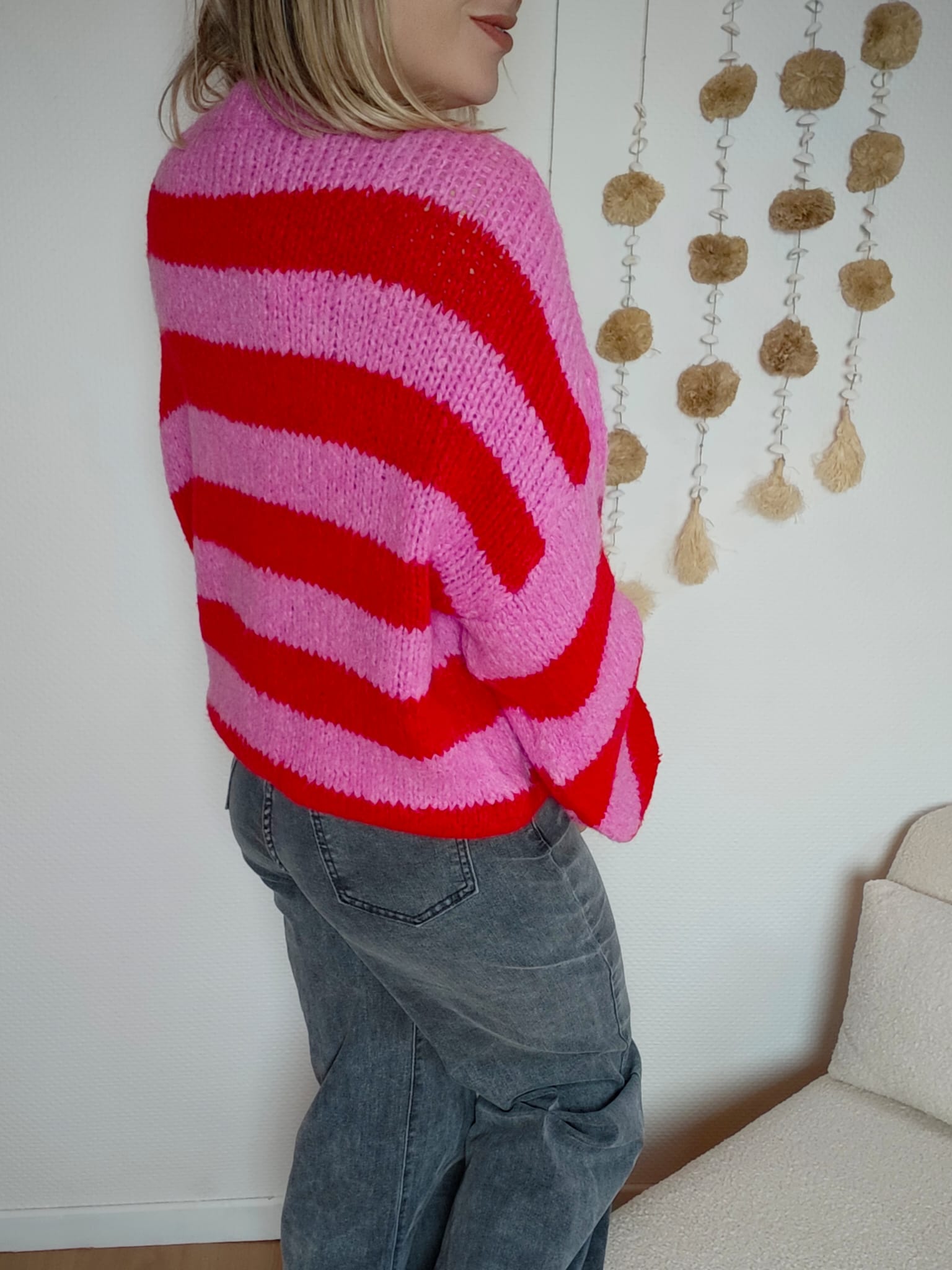Le pull Poppy est la pièce coup de cœur ❤️ qui dynamise instantanément un look. Avec ses larges rayures roses et rouges, il apporte une touche pop, joyeuse et ultra tendance.